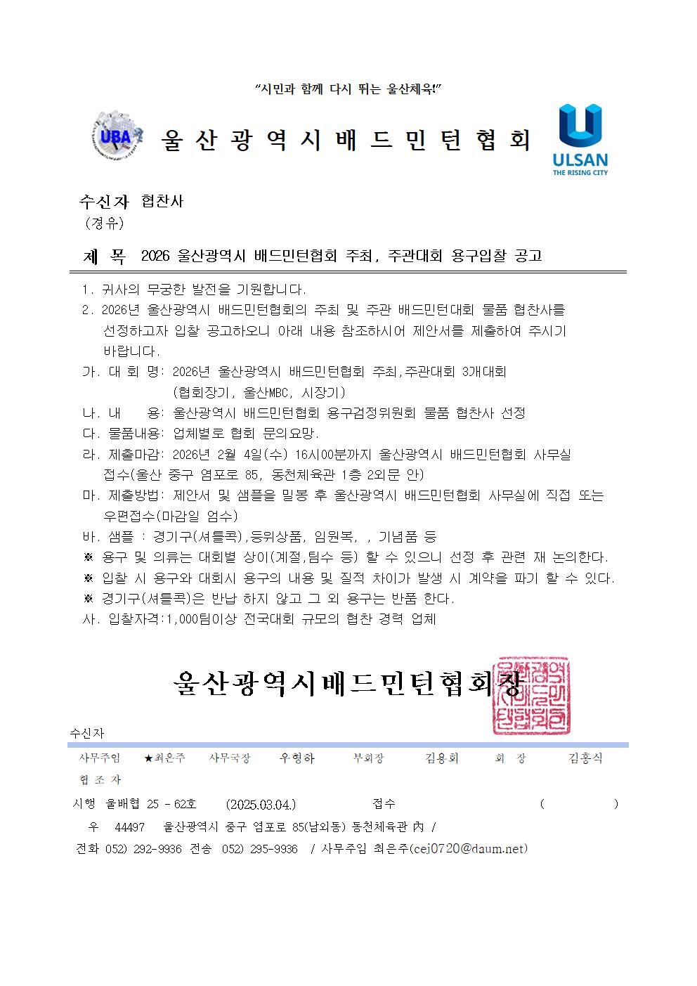 2026 ¿ï»ê±¤¿ª½Ã ¹èµå¹ÎÅÏÇùȸ ´ëȸ¿ëǰ ÀÔÂû°ø°í