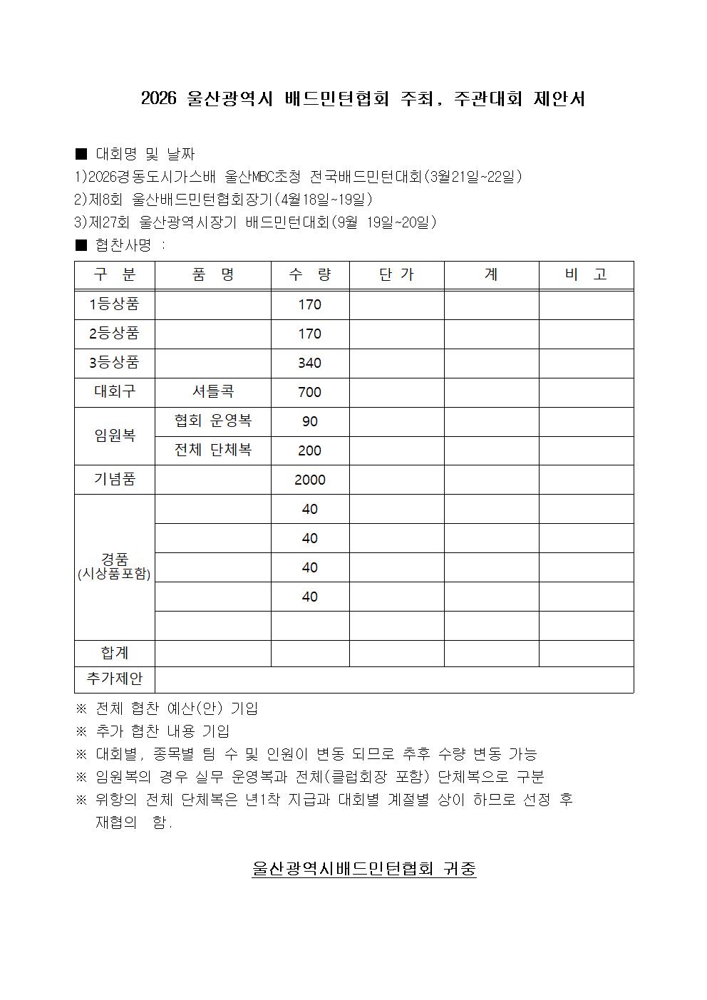 2026 ¿ï»ê±¤¿ª½Ã ¹èµå¹ÎÅÏÇùȸ ´ëȸ¿ëǰ ÀÔÂû°ø...